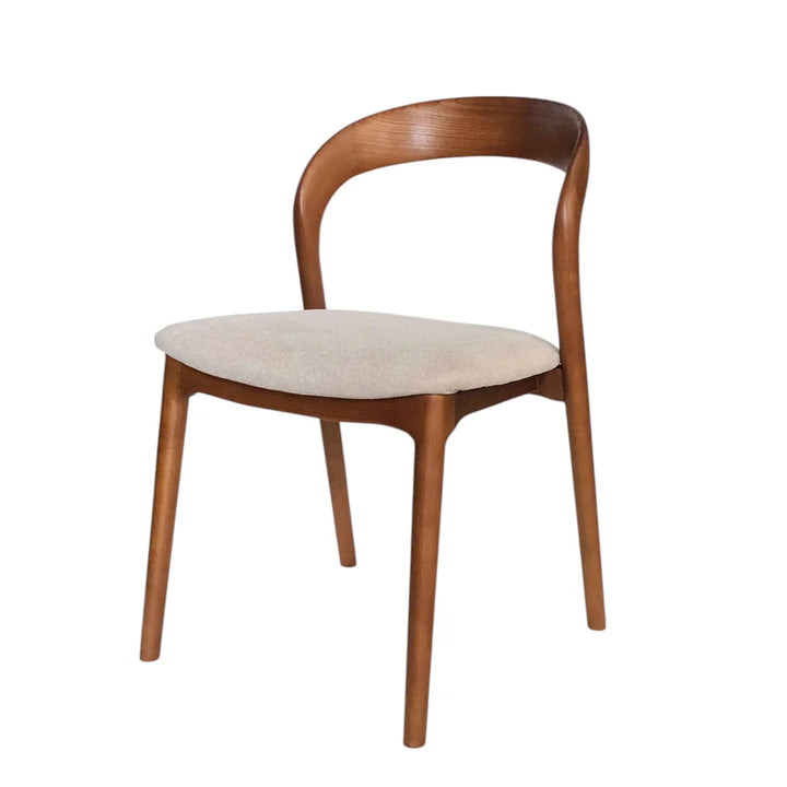 Naxos Dining Chair – Curved Wood Frame & Beige Upholstery