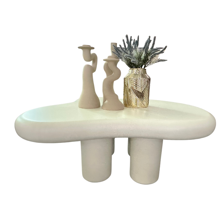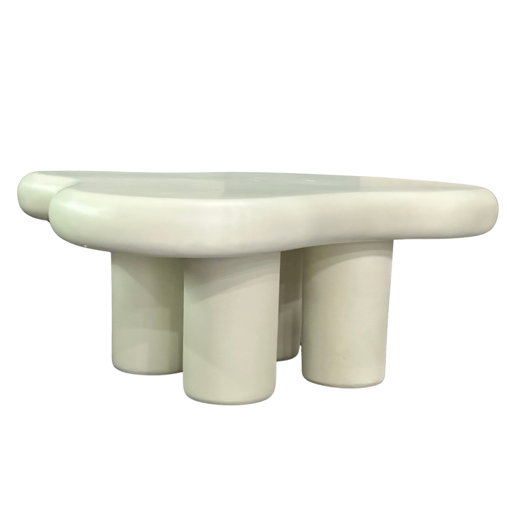 El tablero de mesa distintivo de forma orgánica ofrece un aspecto suave y escultural que se destaca en cualquier habitación.
