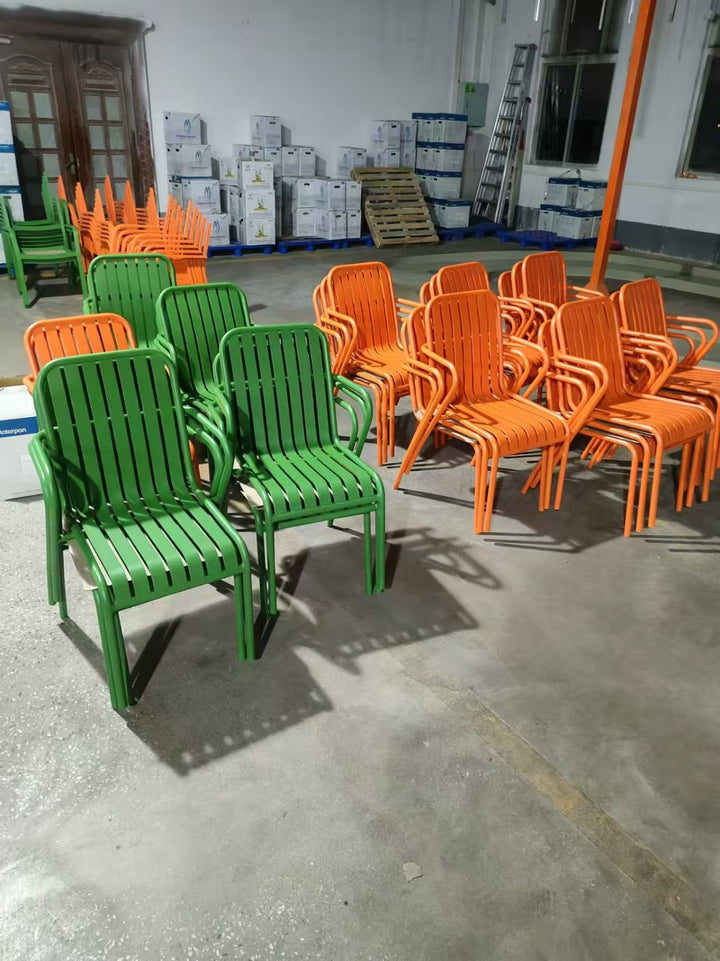 Mejore sus asientos de exterior con esta moderna silla de aluminio de calidad comercial, diseñada por expertos para ofrecer durabilidad y un estilo contemporáneo. Con un diseño elegante y minimalista de listones y una robusta estructura de aluminio con recubrimiento en polvo, esta silla está diseñada para soportar un uso intensivo. Su construcción de listones abiertos garantiza un drenaje rápido y un fácil mantenimiento, mientras que su elegante acabado añade un toque sofisticado a cualquier entorno. Ideal para parques, campus, hoteles y elegantes jardines residenciales, esta silla ofrece comodidad duradera, resistencia y un atractivo moderno.