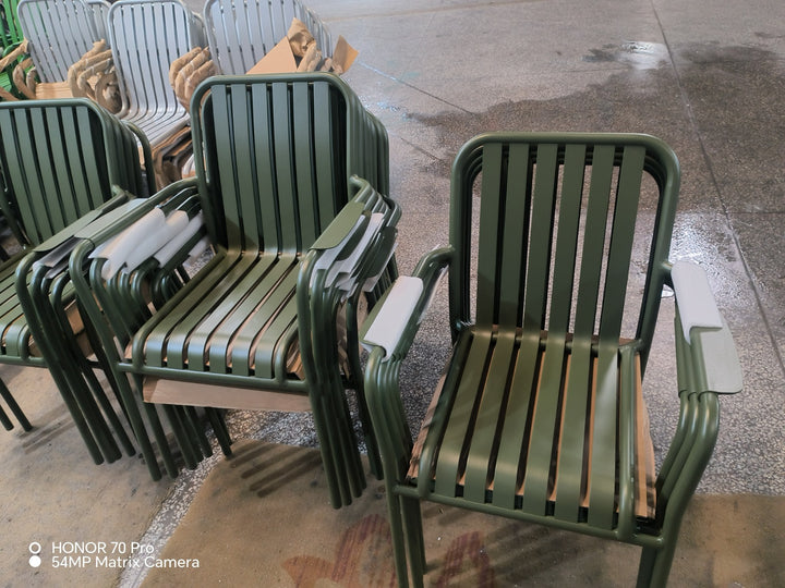 Silla moderna de aluminio para exterior: diseño minimalista de listones