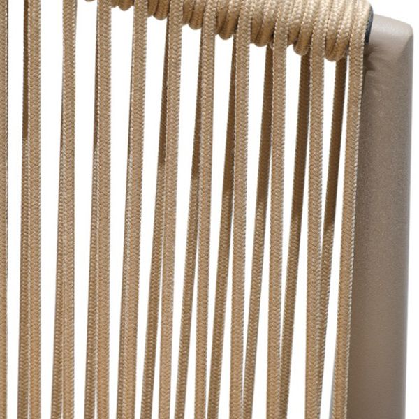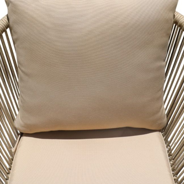 Sillón moderno de cuerda para exterior: estructura de aluminio de calidad comercial y cojines resistentes a la intemperie.