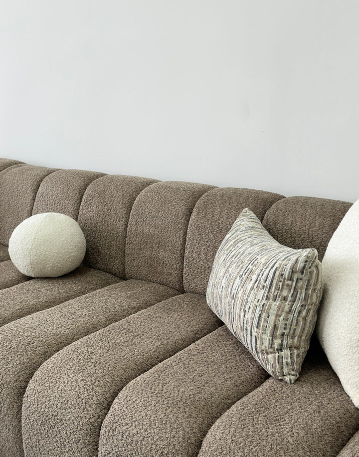 Transforma tu sala de estar con este sofá seccional capitoné , una combinación perfecta de comodidad, lujo y diseño atemporal. Tapizado en tela bouclé de primera calidad, este sofá seccional capitoné cuenta con lujosos cojines y asientos profundos que te invitan a relajarte con estilo.